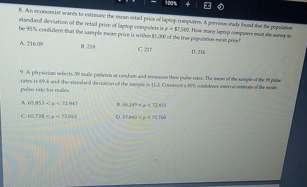 Solved 100 8 An Economist Wants To Estimate The Mean Chegg Com